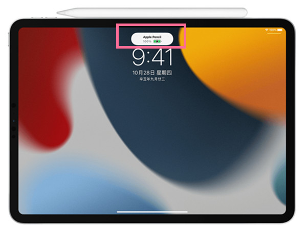 2、在屏幕顶部附近看到充电状态出现后,Pencil便可成功充电。