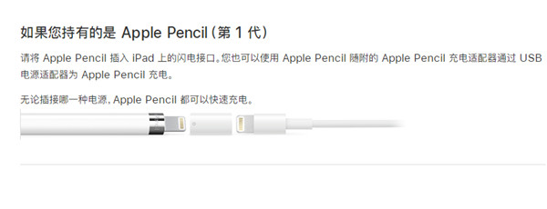 方法1、使用Apple Pencil随附的Apple Pencil充电适配器通过 USB 电源适配器为Apple Pencil进行充电。