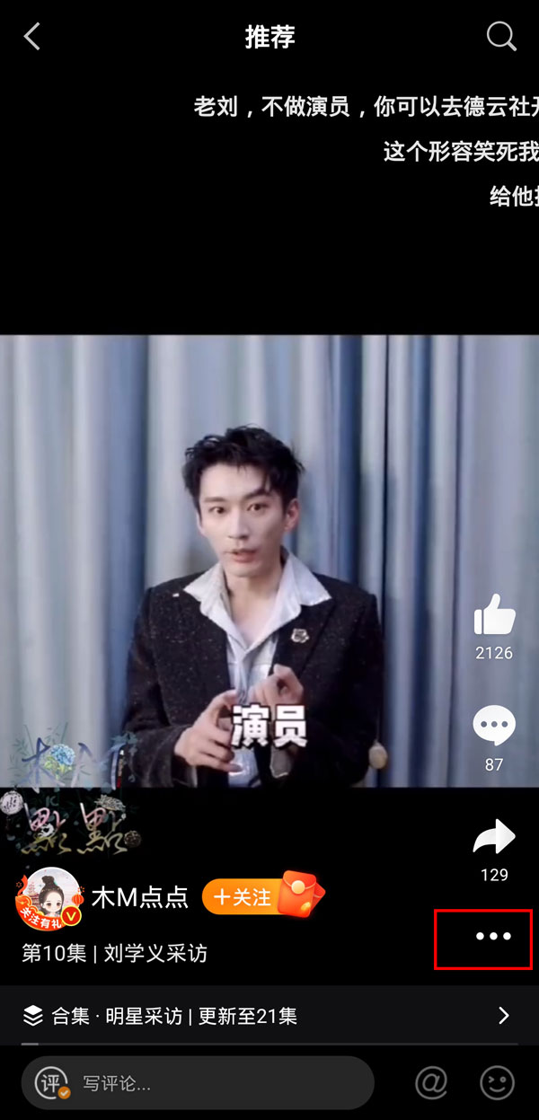 1、打开微博,找到想要缓存的视频,点击右下角的三点图标。