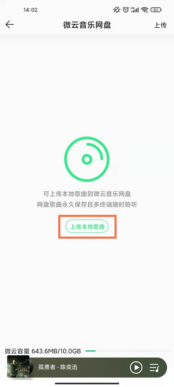 2、点击微云音乐网盘,选择上传的本地视频即可。