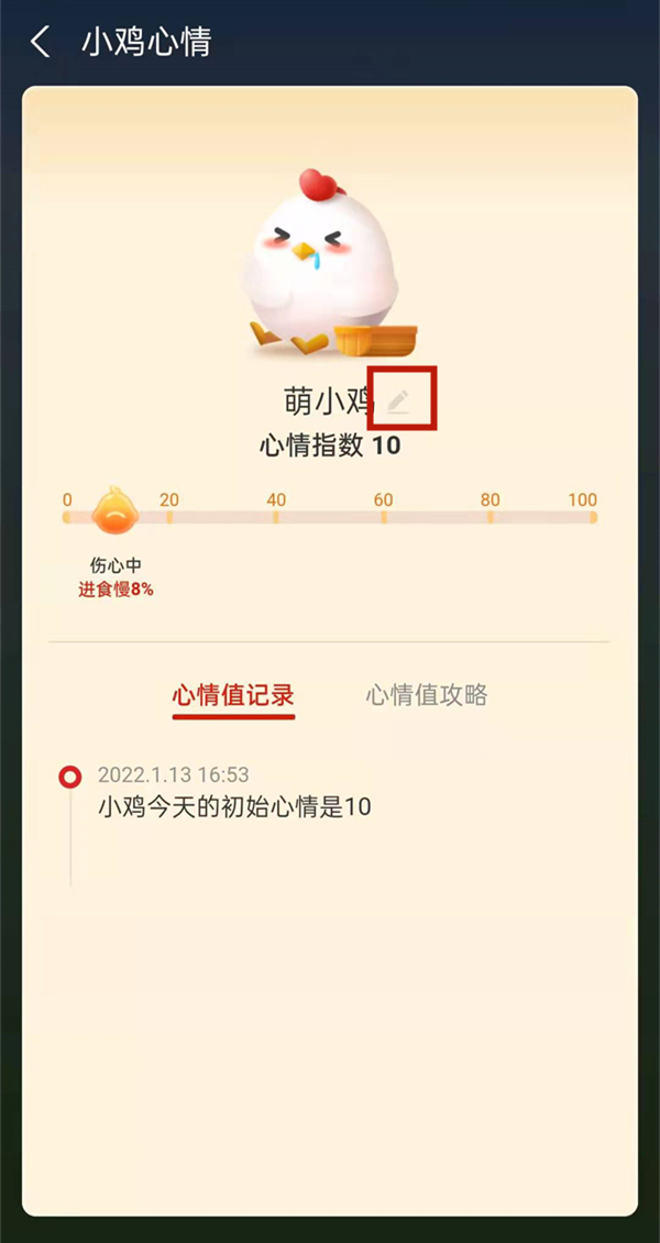 3、点击小鸡名字旁边的编辑图标后输入新名字即可。