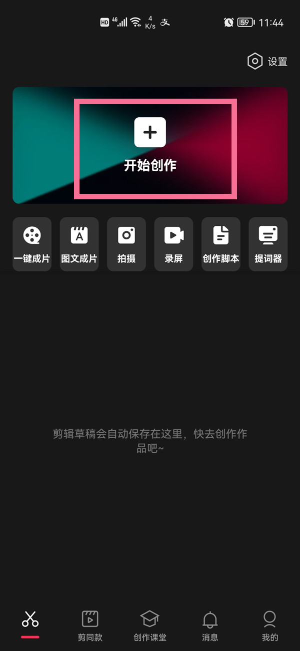 1、打开手机剪映,点击首页的【开始创作】。