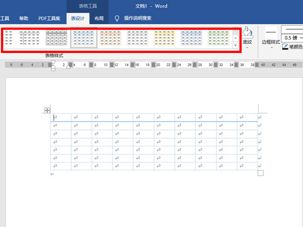 3、点击【表设计】下方的边框可调整边框样式和粗细以及颜色。