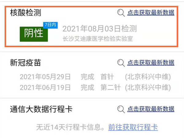 2、点击绑定的健康卡即刻查看核酸检测结果。