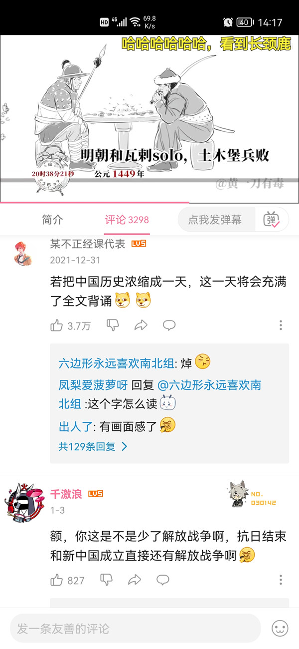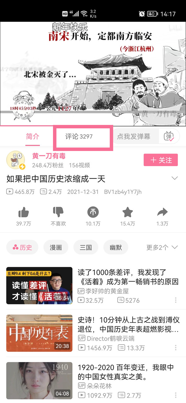 1、打开哔哩哔哩,点击进入发表评论的视频,点击【评论】。