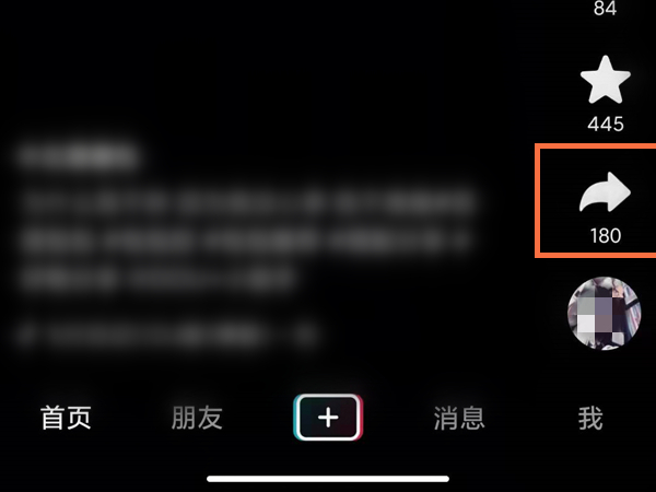1、打开抖音app,在需要转发的视频页面点击右下角转发图标。