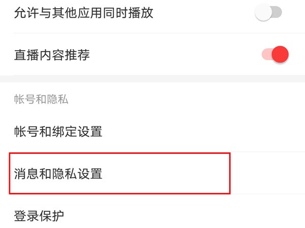 2、点击消息和隐私设置。