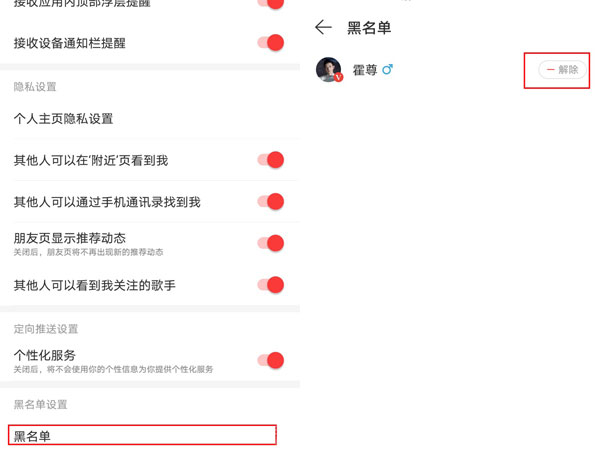 网易云音乐解除黑名单方法如下:
