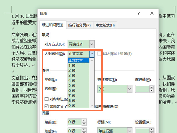 1、打开word文档,选择需要设置为主目录的文字,单击鼠标右键选择段落,在大纲级别中选择。