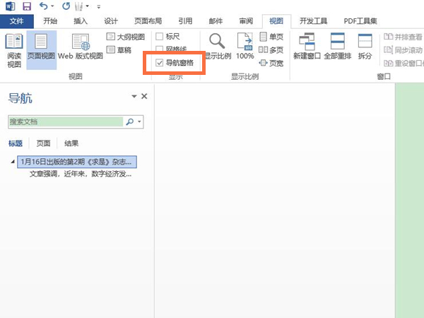 2、设置完毕后,在视图选项下勾选导航窗格即可查看到设置的导航目录。