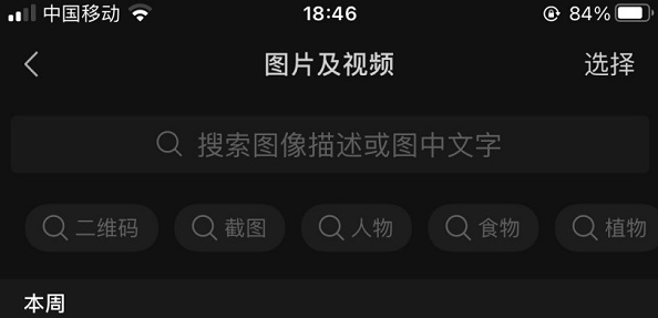 开启后可通过图片信息搜索聊天中的图片,用户可以在搜索框中输入图像描述或图中的文字来进行检索,还增加了“二维码”“截图”“人物”“食物”“植物”等分类搜索按钮,在此之前,聊天图片搜索功能只允许用户在搜索框输入文字内容和图像描述进行搜索。