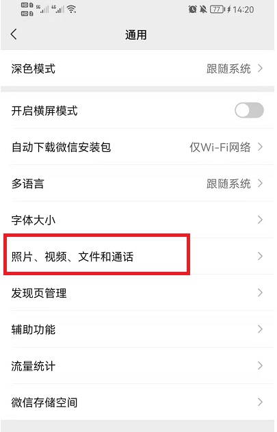 4、在通用中可以找到【照片、视频、文件和通话】功能,进入其中;