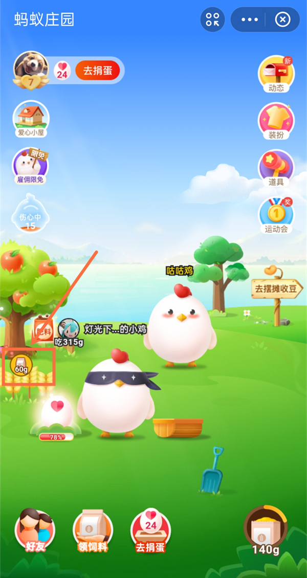2、点击麦子上面的饲料图标即可收取麦子。