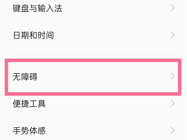 2、点击【无障碍】,选择【听觉】。