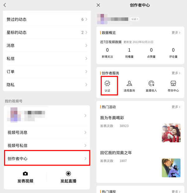 1、打开微信>发现>视频号,点击右上角人物图标打开我的视频号。