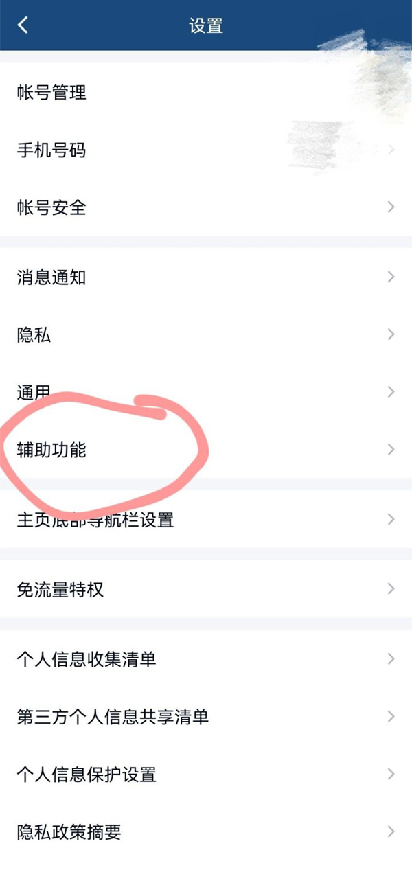 2、在设置页面点击辅助功能。