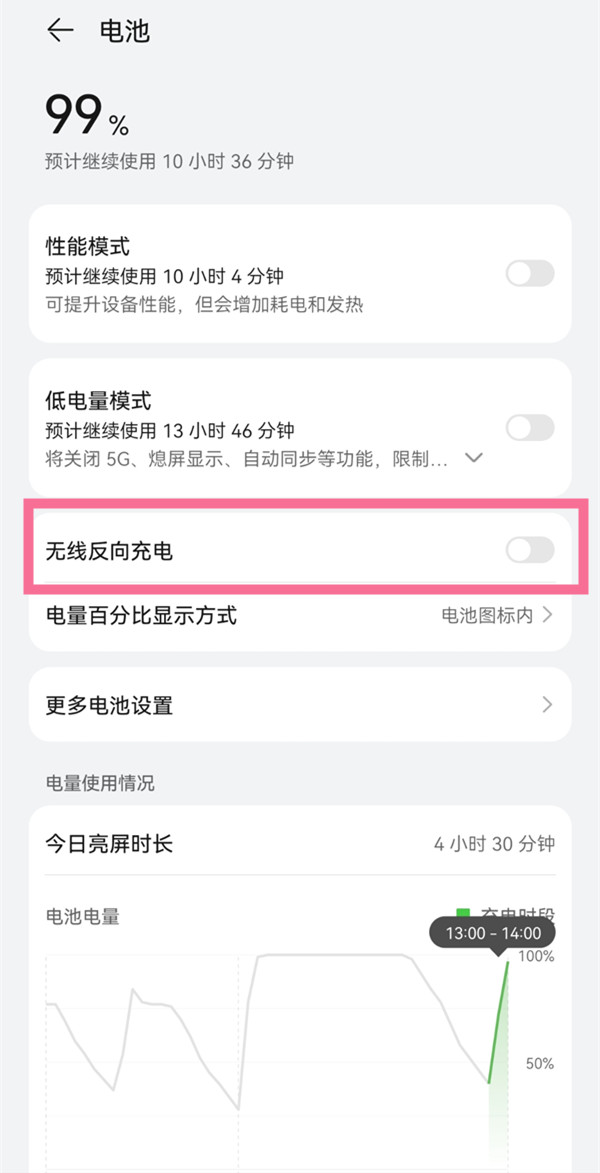 2、打开【无线反向充电】右侧的开关。