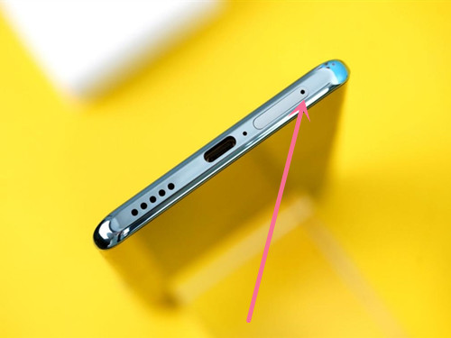 1、在手机机身周围找到SIM卡插卡孔,将卡针垂直插入小孔中取出卡槽。