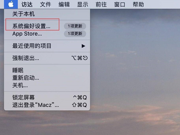 1、点击电脑左上角的苹果图标,选择【系统偏好设置】。