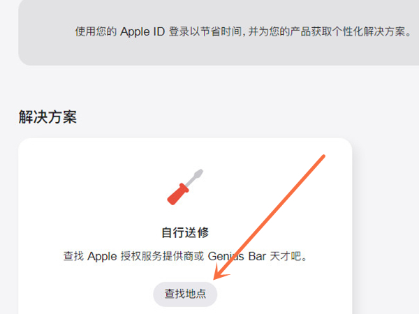 5、点击继续后,登录Apple ID,在自行送修页面点击查找地点后完善预约信息即可。