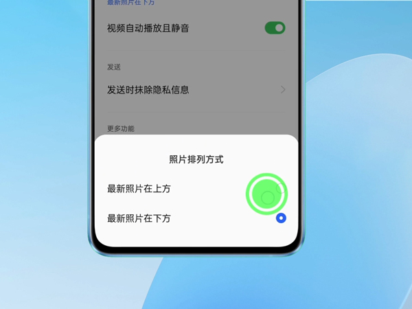 3、根据自己的需要选择最新照片在上方还是在下方即可。