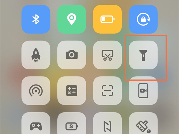 2、找到手电筒图标,点击一下即可开启。