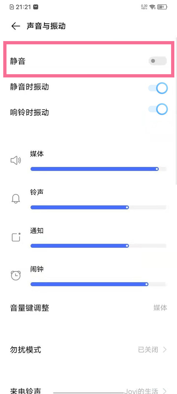 也可以从屏幕顶端下拉,拉出控制中心,点亮【静音模式】即可。