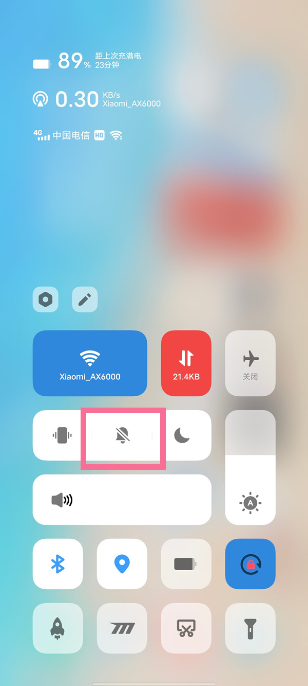也可以从屏幕顶端下拉,拉出控制中心,点亮【静音模式】即可。