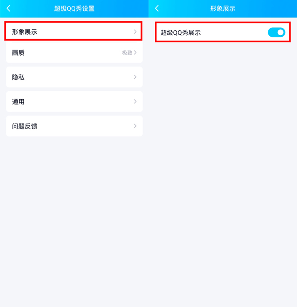 3、点击【形象展示】,关闭【超级QQ秀展示设置】右侧开关即可。