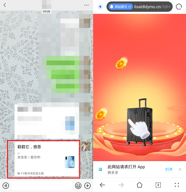 1、找到助力口令,点击进入,根据提示点击页面,点击拼多多请求弹窗的【打开】。