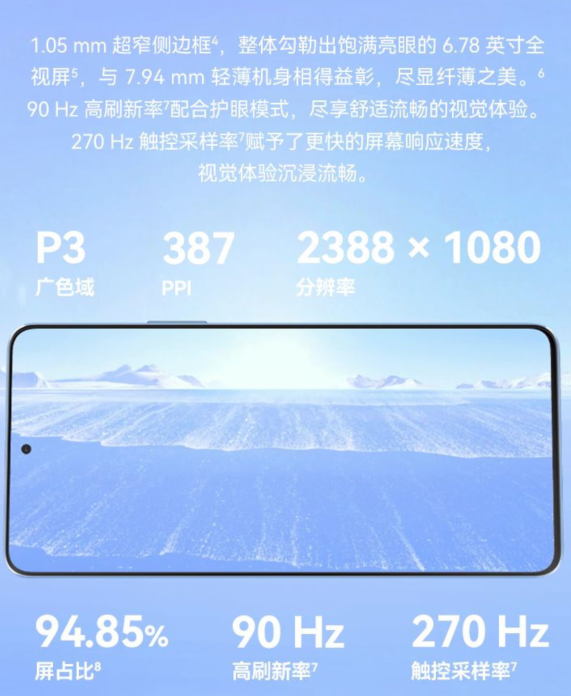 ◆6.78英寸LCD居中打孔屏,分辨率