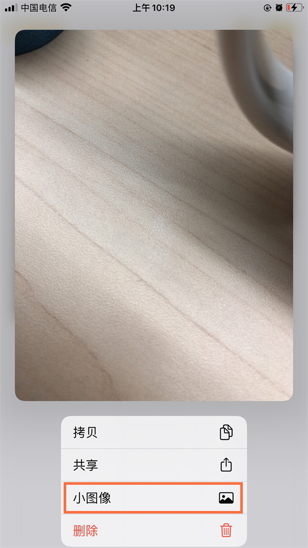 3、在备忘录里长按照片后,点击小图像,备忘录的照片就会变小。
