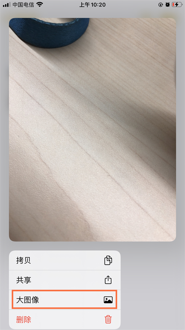 4、长按备忘录的小照片后,点击大图像,备忘录的图片就会变大。