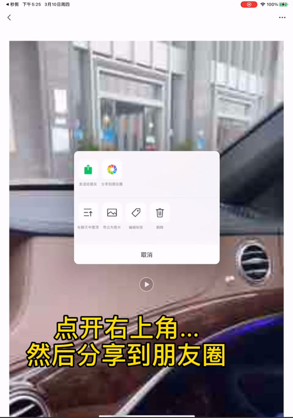 ipad如何发视频到朋友圈?