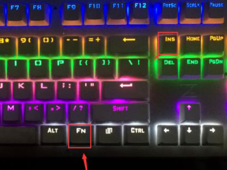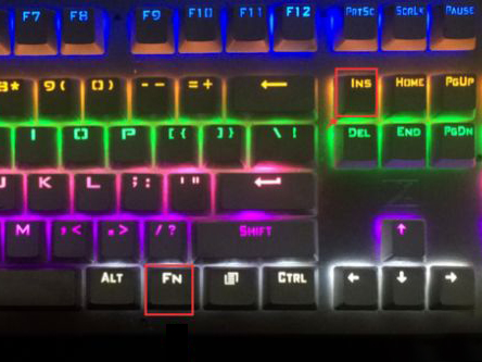 2、直接按【Fn+Ins】组合键即可调节灯光。