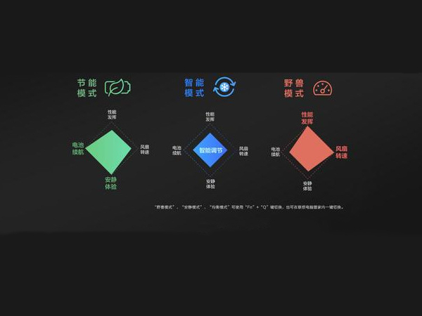 2、三个模式的切换都是按Fn+Q按键,三个模式分别为节能模式、智能模式和野兽模式。