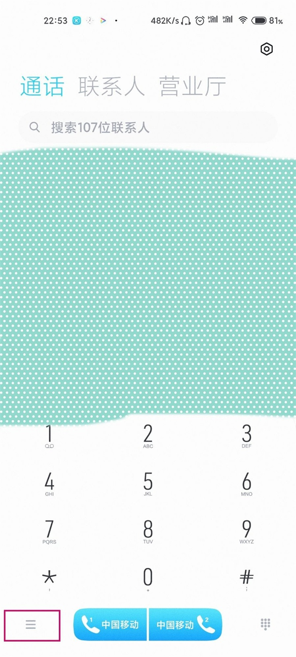 1、在拨号界面,点击左下三横图标。