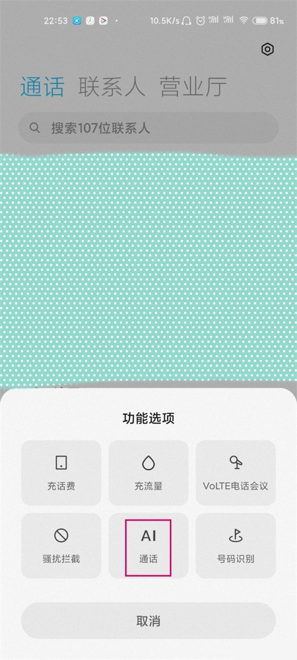 2、在弹出界面点击AI通话。