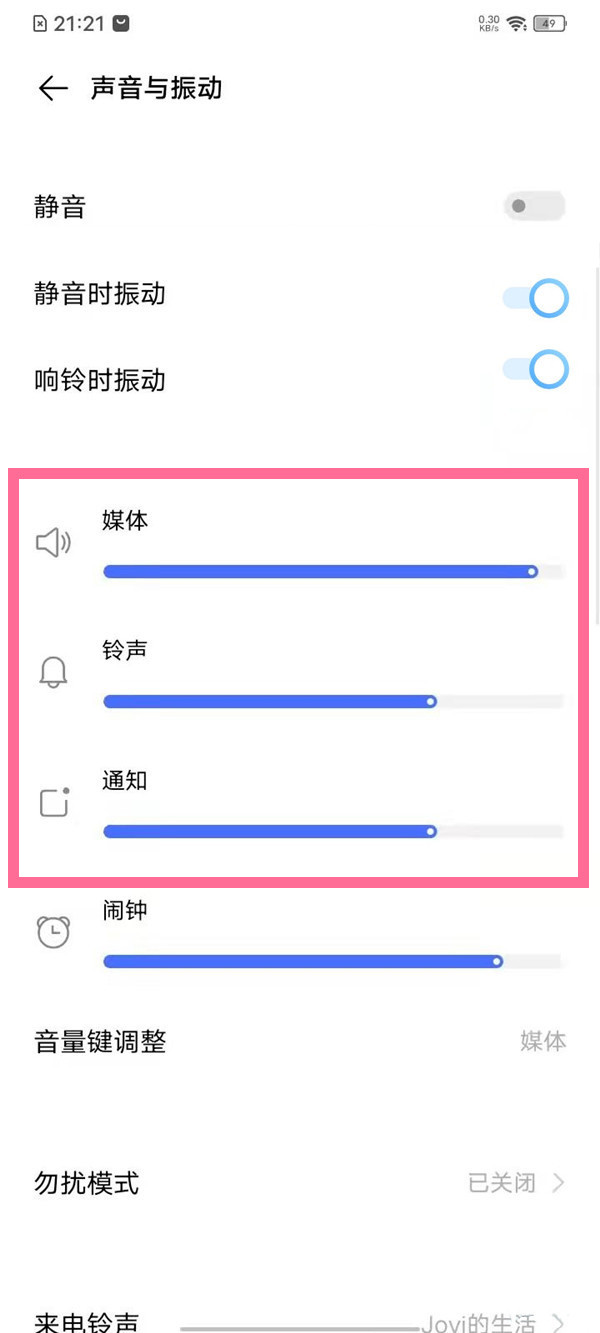 iqoo充电提示音不支持自定义设置,只需开启手机通知音量,连接充电器后就会有提示音。开启通知音量方法如下:
