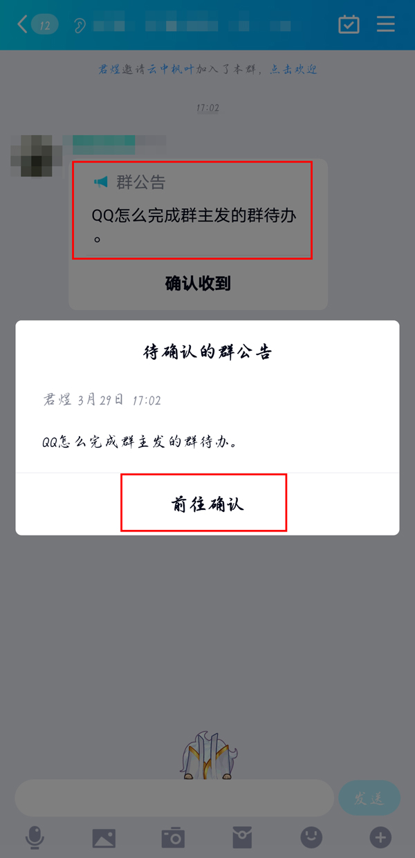 qq上面的群待办可以通知所有群友具体的消息,这样一些不经常看群的,小伙伴也可以及时收到重要的信息,那么要怎么完成群待办,确认自己收到了呢?