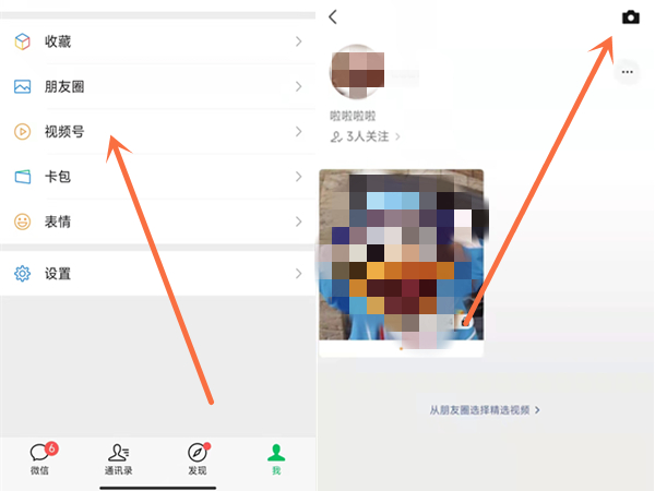 1、打开微信app,在我界面点击视频号,再点击右上角拍摄图标。