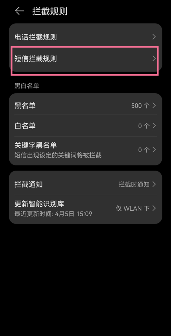 3、再点击【短信拦截规则】。
