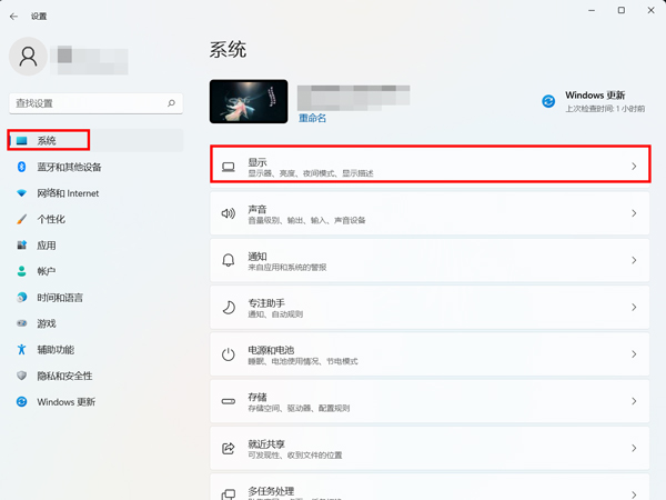 2、点击【系统】点击【显示】,然后选择调节亮度等级就能进行亮度调节。