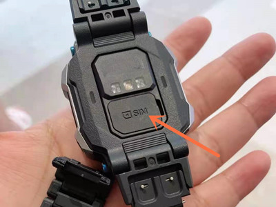 1、将小天才手表翻到后面,用取卡器的凸起位置对准SIM卡盖的凹槽,轻轻顺时针用力,取SIM卡及卡盖时不要太用力,以免损坏芯片。