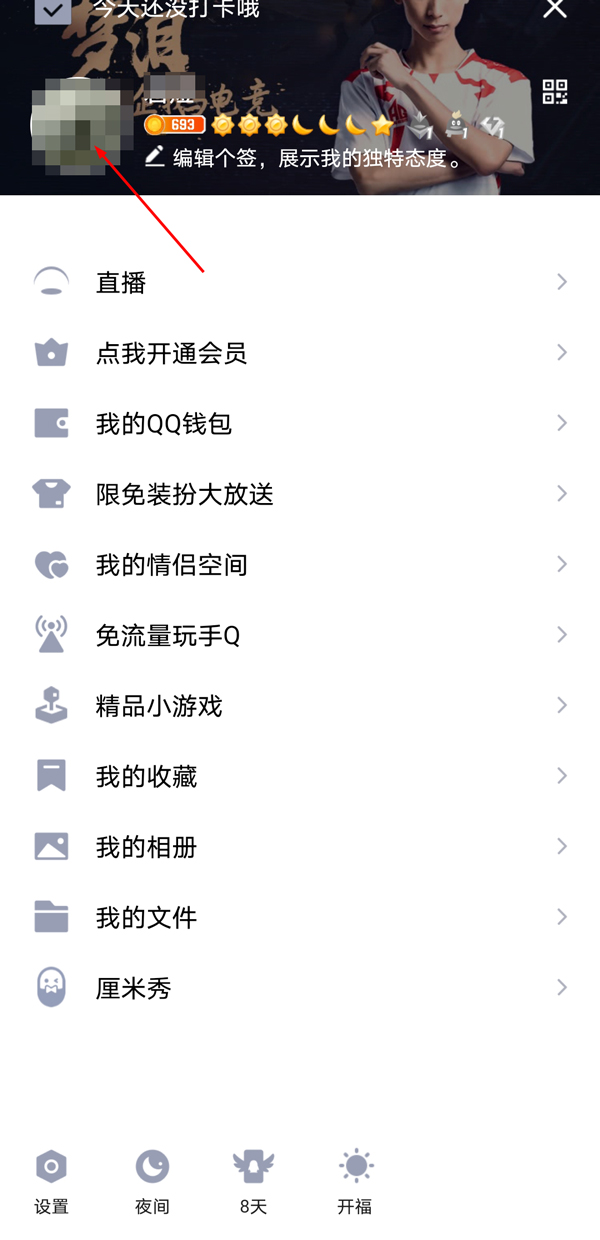 1、在手机qq点击左上角头像,再次点击头像打开我的主页。