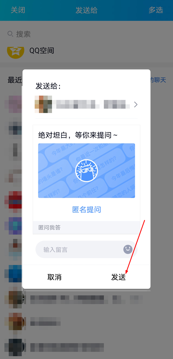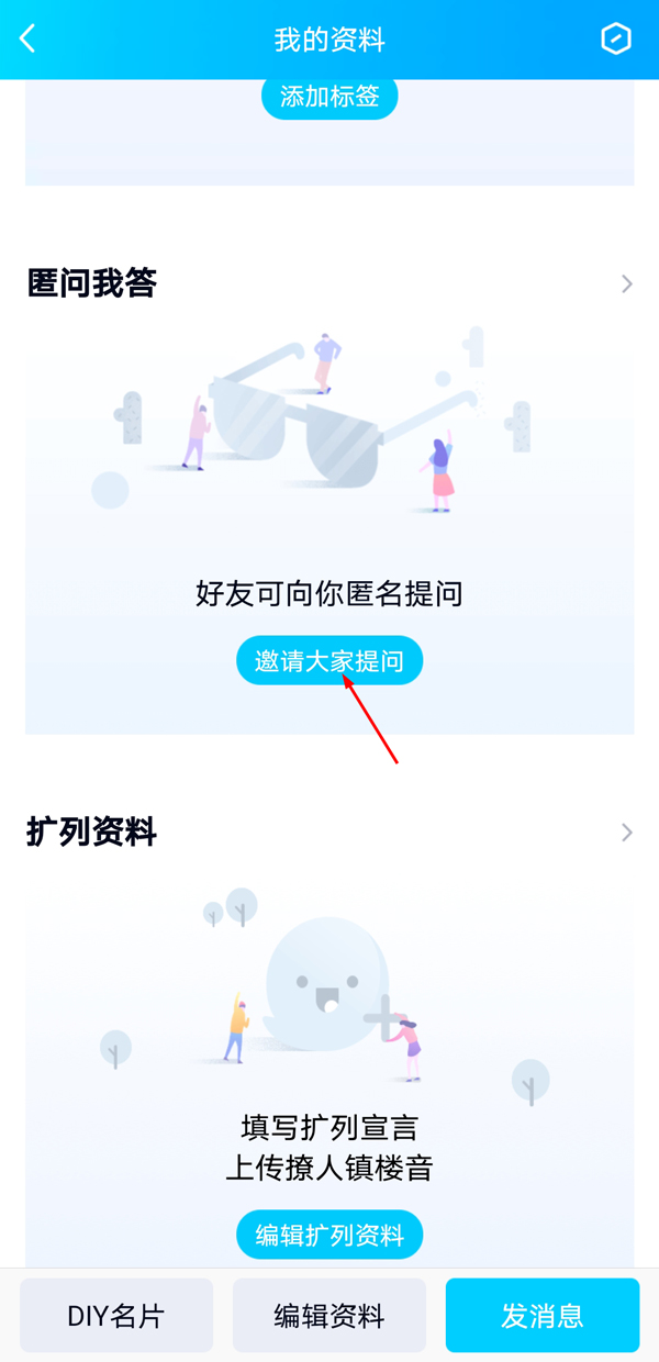 2、在匿问我答卡片上点击【邀请大家提问】。