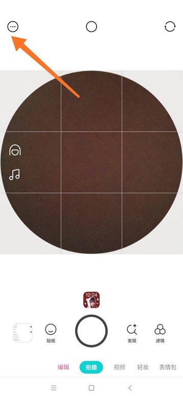 2、进入B612咔叽后,点击左上角三个点的符号(如图所示)。
