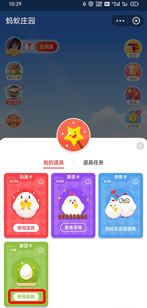 目前新蛋卡只能通过蚂蚁庄园 - 道具 - 道具任务做任务获得,连续15天完成蚂蚁庄园小课堂答题即可的获得新蛋卡。