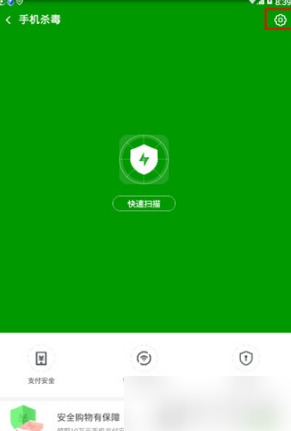 2、在360手机卫士的“手机杀毒”界面中,点击界面右上角的“设置”按钮(如图所示);