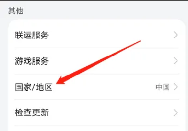 第二步:在设置页面,点击国家/地区。
